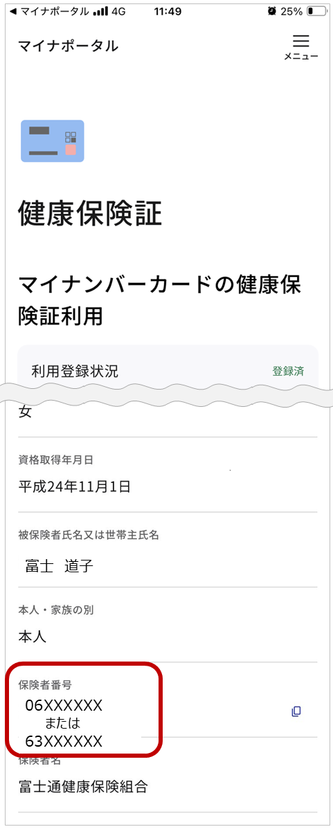 ・マイナポータル「健康保険証」メニューの下部に記載