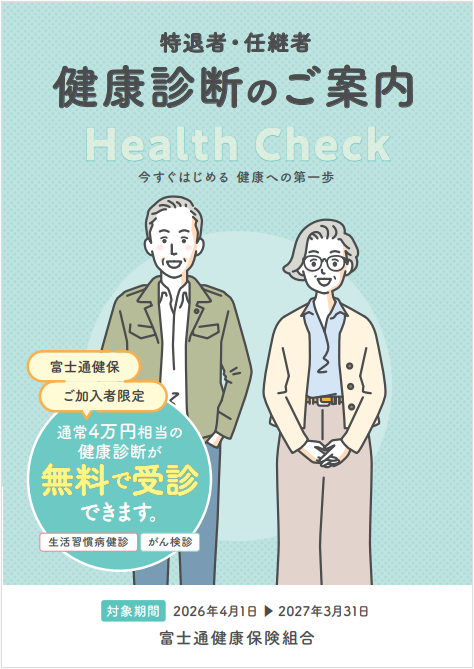 富士通健康保険組合では、特例退職被保険者及び当該年度内に40歳以上となる任意継続被保険者に対する疾病予防事業として、生活習慣病やがんの予防のための『特退者健診/任継者健診制度』を実施しております。